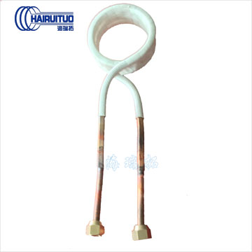 在選材上,應(yīng)選用電阻率小高純銅,規(guī)格、壁厚應(yīng)能滿足最大工作電流的要求。為避免感應(yīng)圈與工件碰觸打火,感應(yīng)圈匝間打火,防磁飽和等對(duì)機(jī)器或工件造成損壞和影響。在制作時(shí),不但要設(shè)計(jì)好感應(yīng)方案,確定感應(yīng)圈的形狀,計(jì)算出各主要參數(shù)。還需要選擇好隔熱、絕緣、保溫及防護(hù)等材料。如高溫絕緣套管、高溫保溫棉、石英管、石墨管、硅膠和耐火材料等。